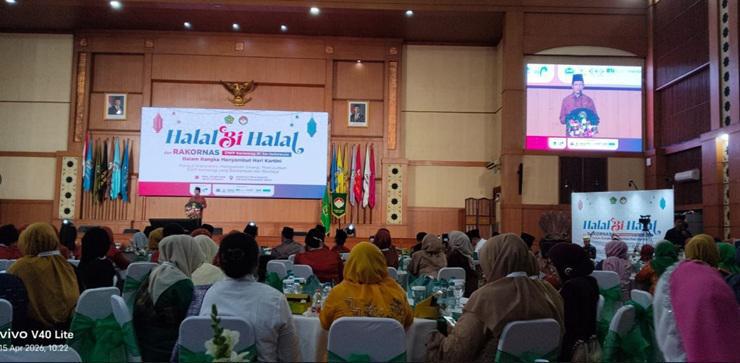 Acara diawali dengan registrasi peserta dan pembukaan yang berlangsung khidmat. Dengan mengenakan pakaian daerah masing–masing, ratusan peserta dari berbagai daerah menambah semakin terlihat semarak dan meriah. Dalam sambutan pembukanya, Penasehat DWP Kemenag RI, Hj. Helmi Halimatul Udhmah Nasaruddin Umar, menyebutkan jika momentum Halal bihalal yang digelar bertepatan dengan peringatan Hari Kartini tidak hanya diposisikan sebagai ruang penyucian hati, penguatan silaturami, dan penguatan energi kebersamaan, melainkan juga penguatan peran strategis Perempuan sebagai penggerak perubahan di lingkungan keluarga, organisasi, dan kebangsaan. Terlebih halal bihalal dan rakornas kali ini dilaksanakan bertepatan dengan peringatan Hari Kartini.