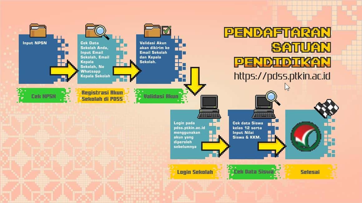 Satuan pendidikan diwajibkan melakukan registrasi sekolah secara daring melalui laman resmi PDSS SPAN PTKIN di alamat https://pdss.span.ptkin.ac.id/.